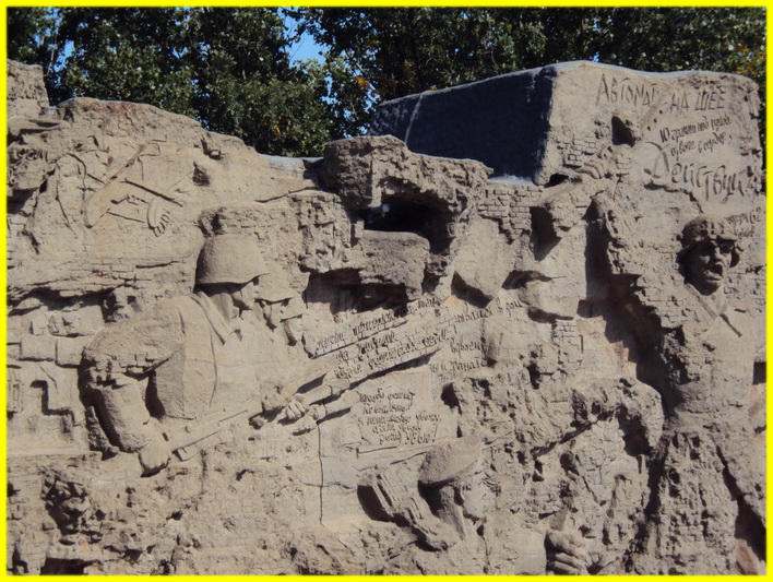 rechte Mauerruine - Aus unsichtbaren Lautsprechern ertönt Kampfeslärm.