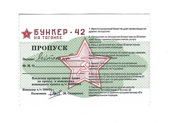Eintrittskarte - als Tourist zahlt man 2.000 Rubel